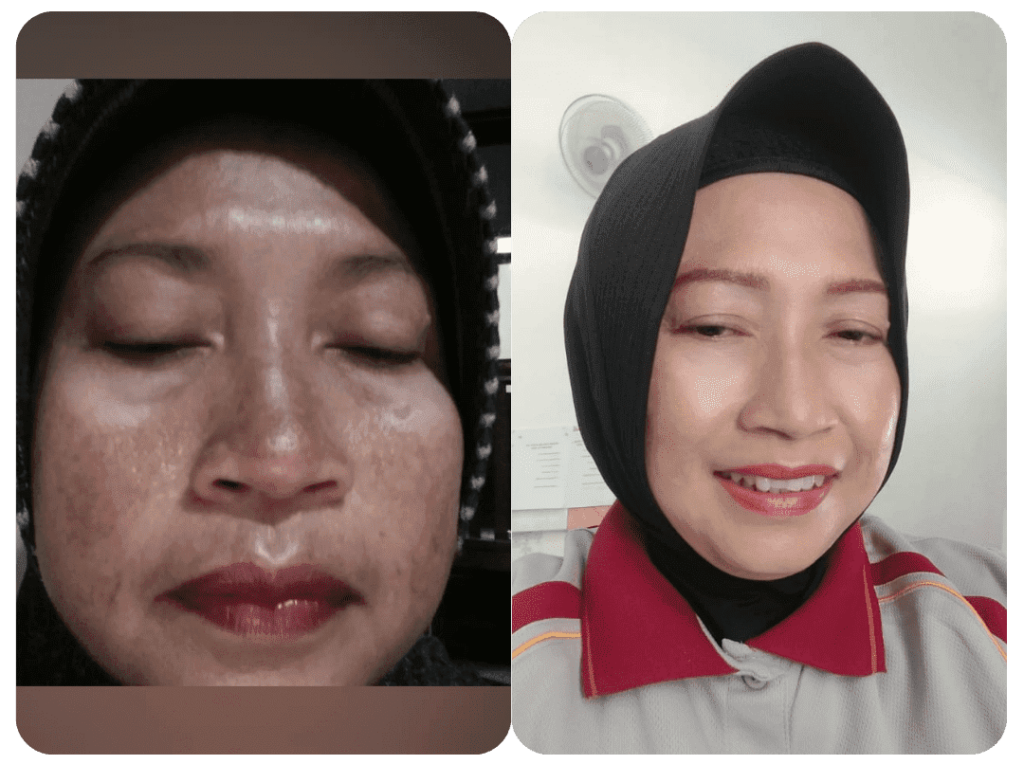 “Hasilnya sangat terlihat! Flek hitam membandel di wajah samar hampir hilang setelah pakai Haruka. Kulit wajah juga terlihat lebih cerah, bersih, dan sehat pastinya.”